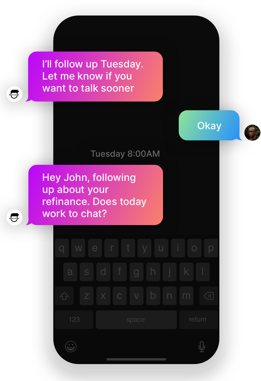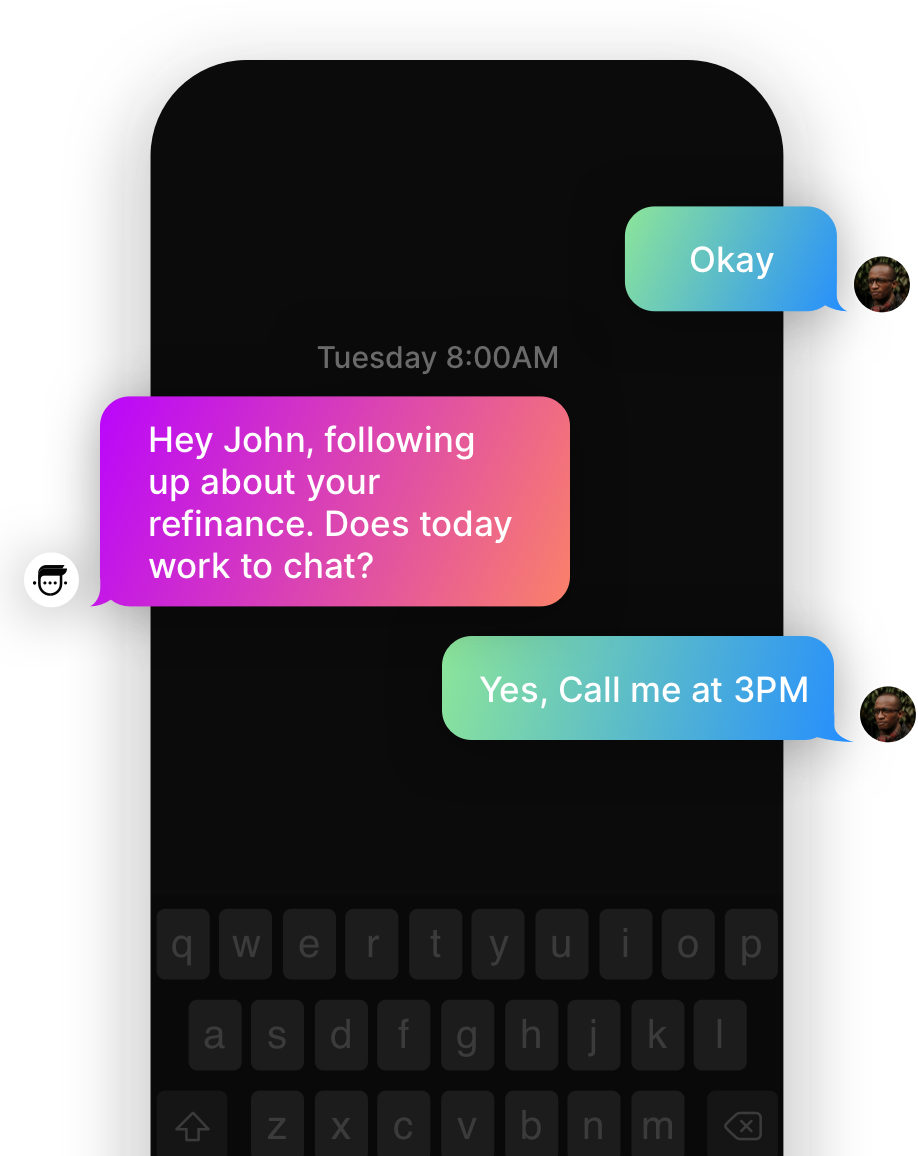 Get a DemoMost leads need to be followed up with before they’re ready to move forward. Instead of chasing them down, schedule persistent follow ups with Mav. In an automated two-way conversation, Mav will follow up with the lead on their preferred date, confirm they’re still interested, and can schedule a new time to chat with a sales rep.