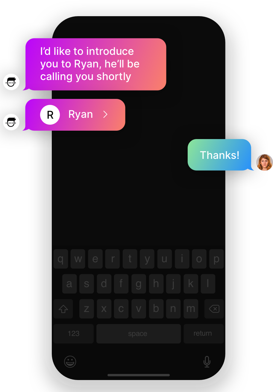By instantly introducing your sales rep and sharing their contact card, you’ll boost the lead-to-contact rate and personalize the first point of contact. As an added bonus, on iOS and Android the sales reps name will show up when they call, text or leave a voicemail.